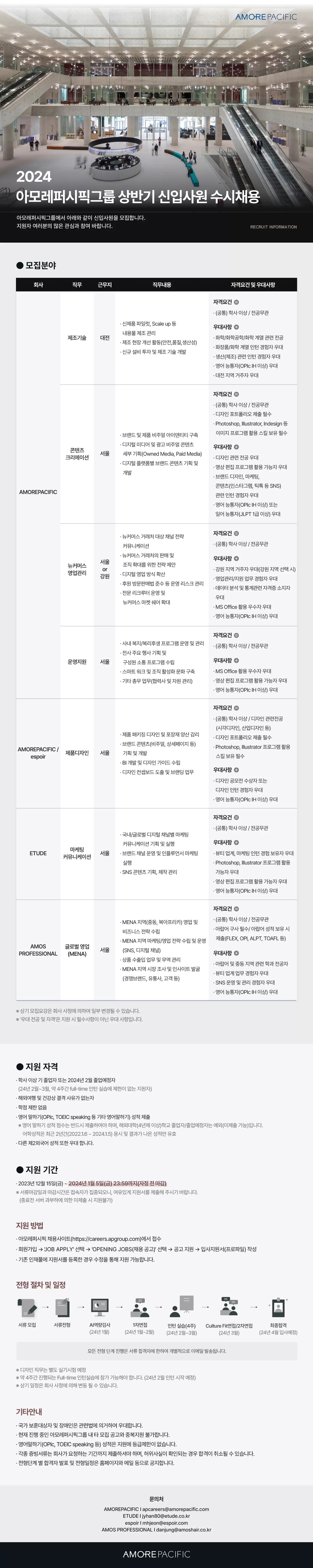 [아모레퍼시픽] 2024 상반기 신입사원 수시채용 (~1/5)