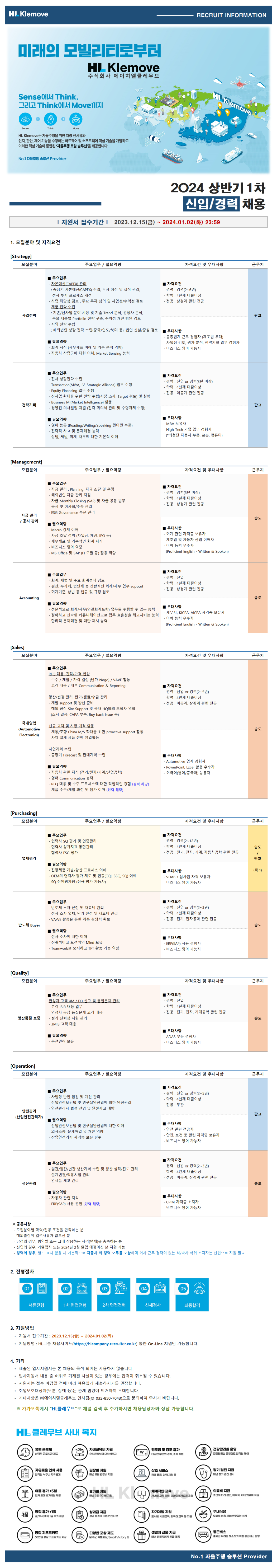 ○ 모집분야 : 전략기획 / 회계 / 영업 / 품질보증 / 생산관리 등