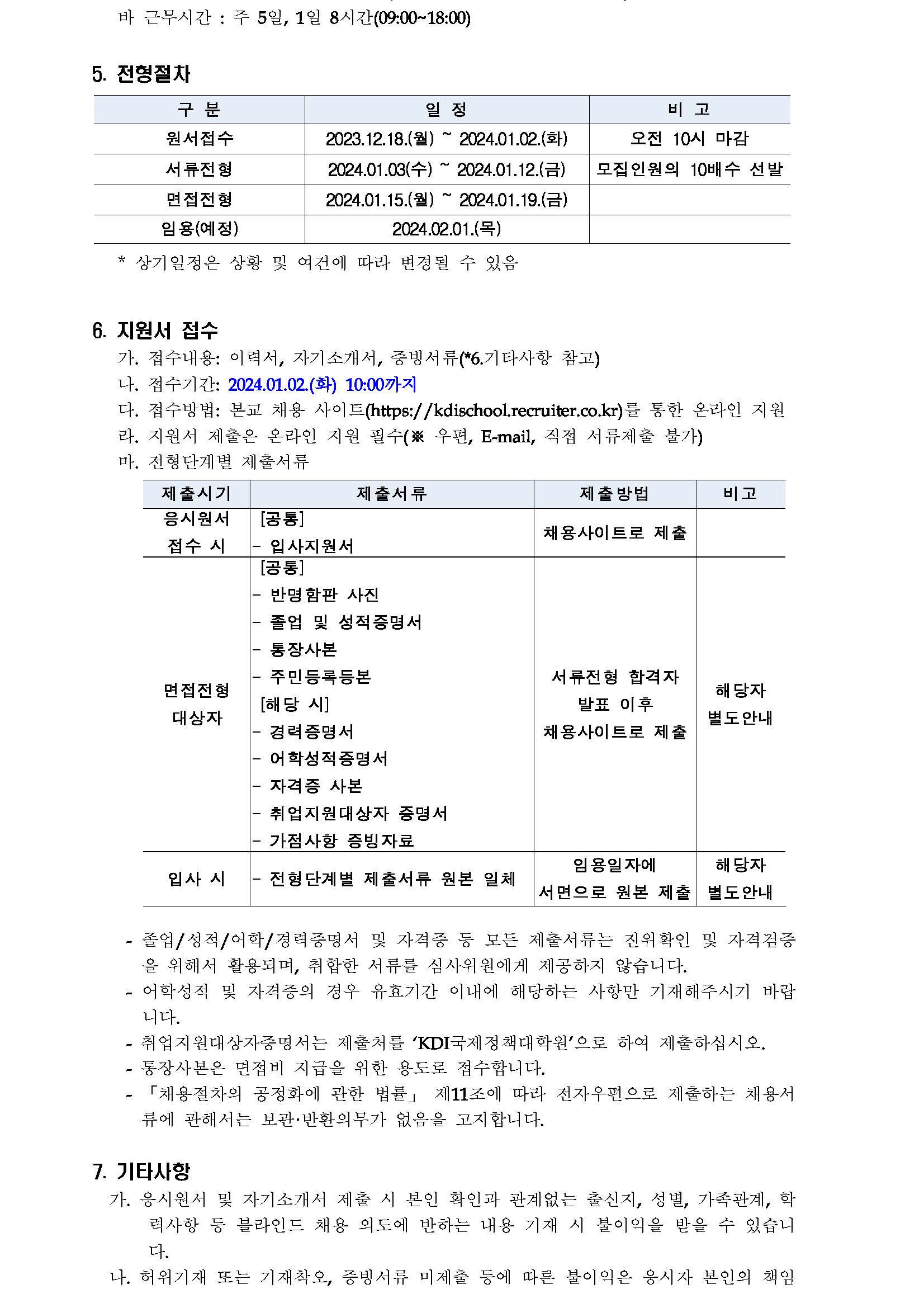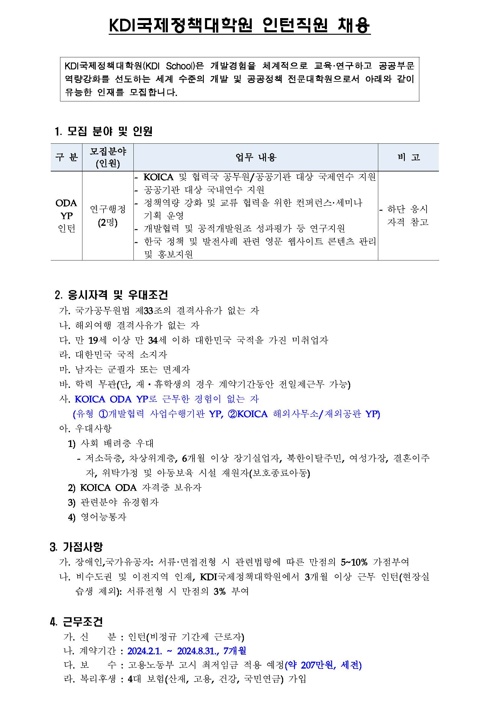 [KDI국제정책대학원] 24년 상반기 인턴직원 채용 (~1/2 10:00)