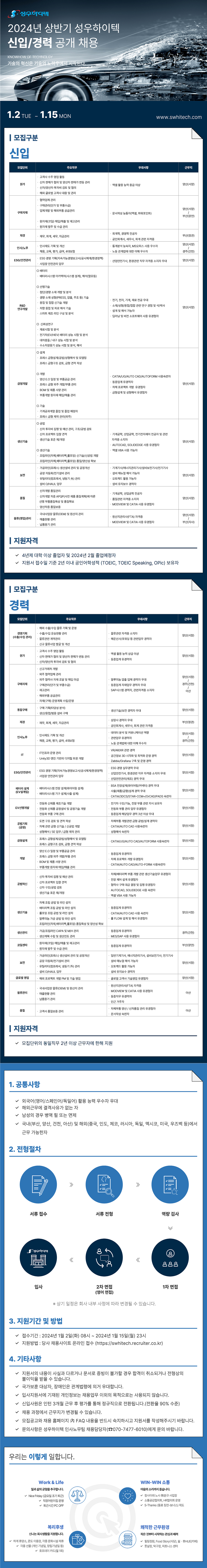 [성우하이텍] 2024년 상반기 신입사원 공개 채용 (~1/15 23:00)