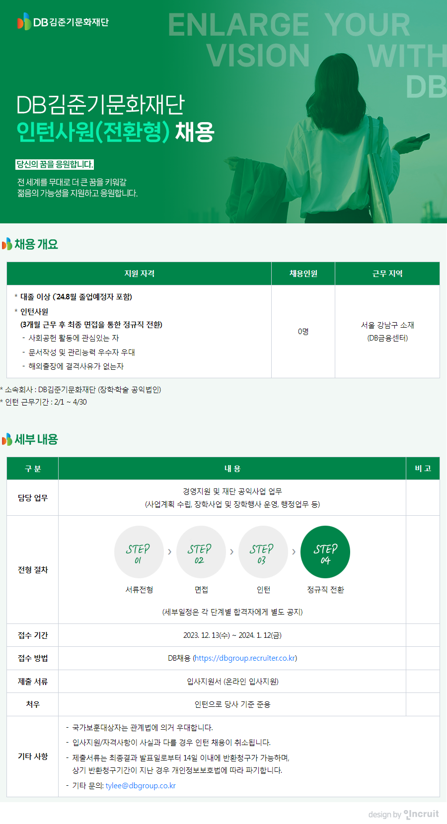 [DB김준기문화재단] 전환형 인턴사원 채용 (~1/12)