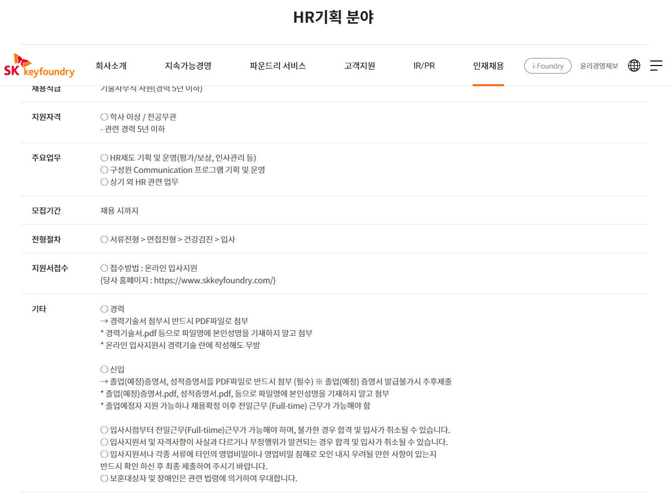 [SK키파운드리] HR기획 분야 채용 (~1/21)