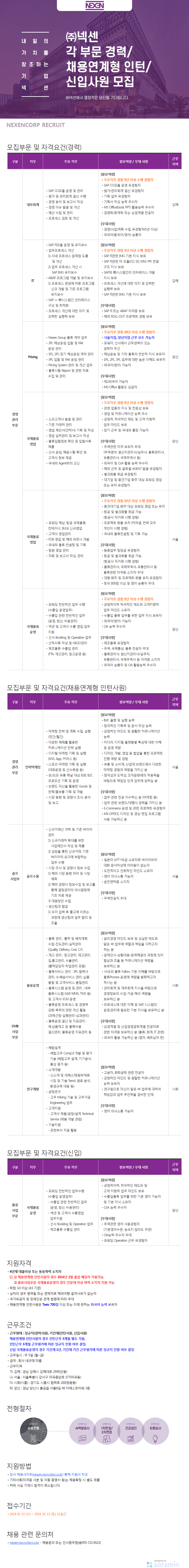 [넥센] 2024년 각 부문 경력사원 / 채용연계형 인턴사원 / 신입사원 모집 (~1/13)