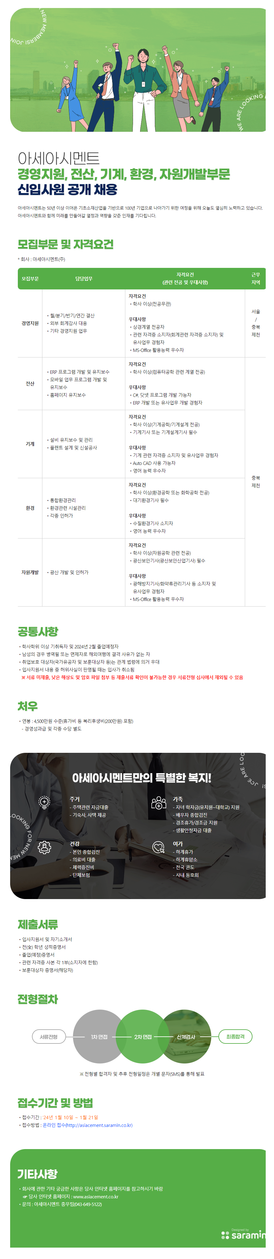 [아세아시멘트] 2024년 신입사원 모집 (~1/21)