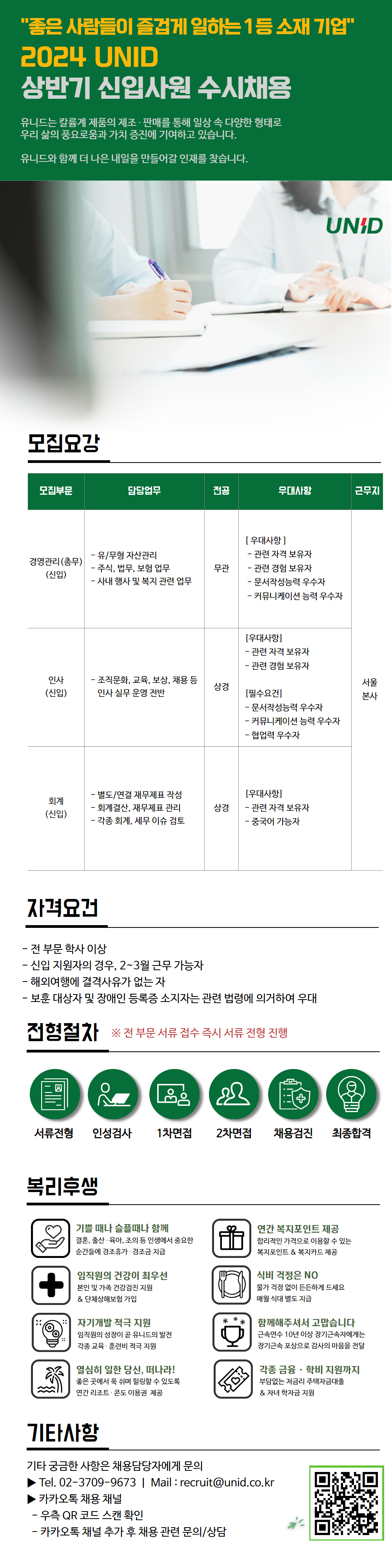 [유니드] 2024년 상반기 신입 수시채용 (~1/24)