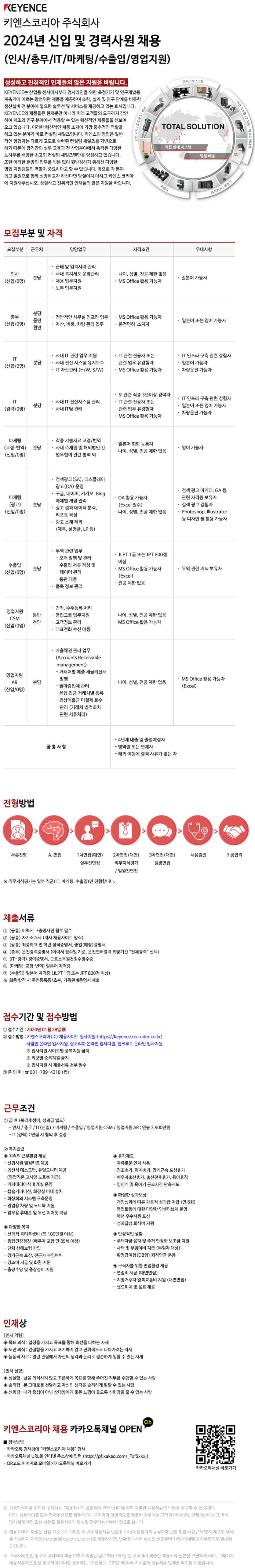 [키엔스코리아] 2024년 상반기 비영업 신입 및 경력사원 채용 (~1/28)