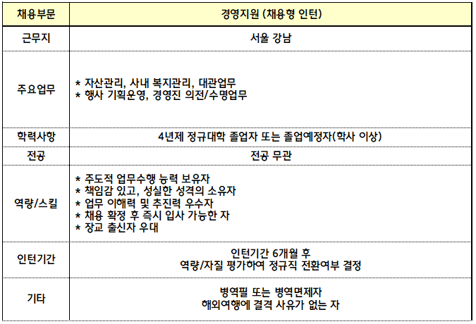 [현대비앤지스틸] 경영지원 채용형 인턴 모집 (~1/25 23:00)