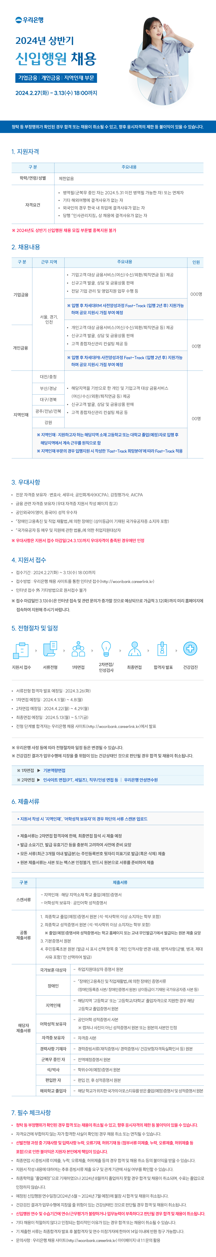[우리은행] 2024년 상반기 신입행원 채용 (3/13 18시까지)