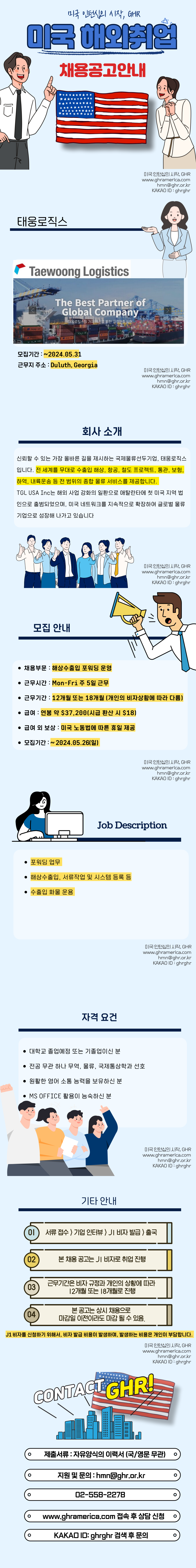 [미국인턴] 태웅로직스 해상수출입 포워딩 운영 인턴채용.png