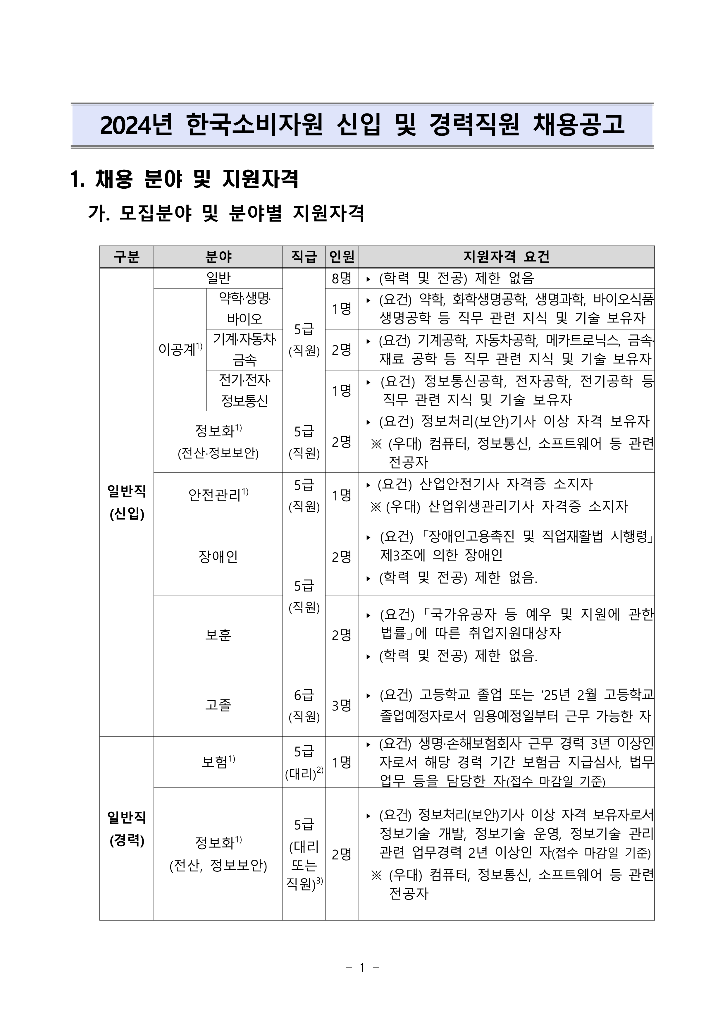 [한국소비자원]2024년 한국소비자원 신입 및 경력직원 채용공고(~7/2)