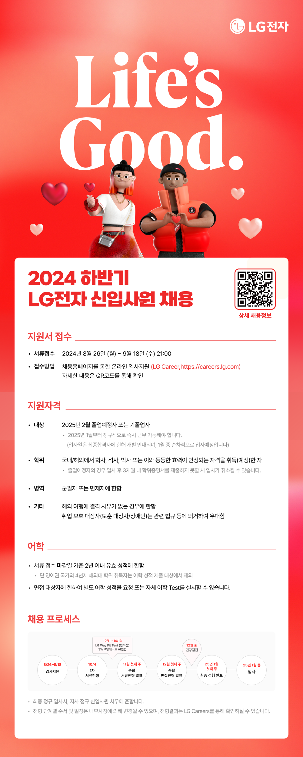 [LG전자] 2024년 하반기 신입사원 채용 (~9.18, 21시)
