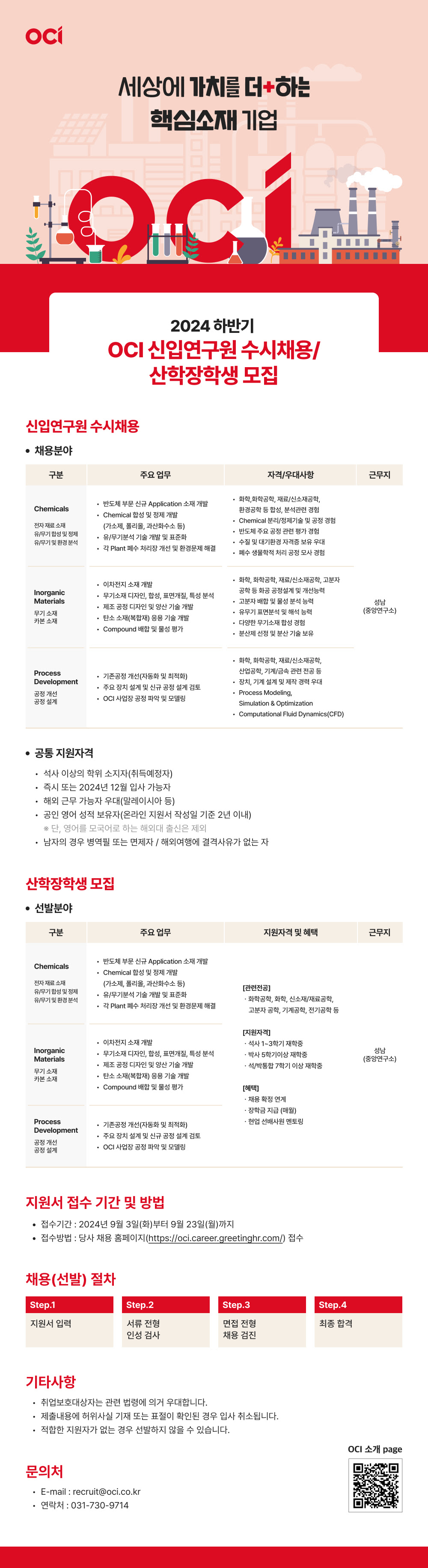 - 화학, 화학공학, 재료/신소재공학, 환경공학 등 합성, 분석관련 경험