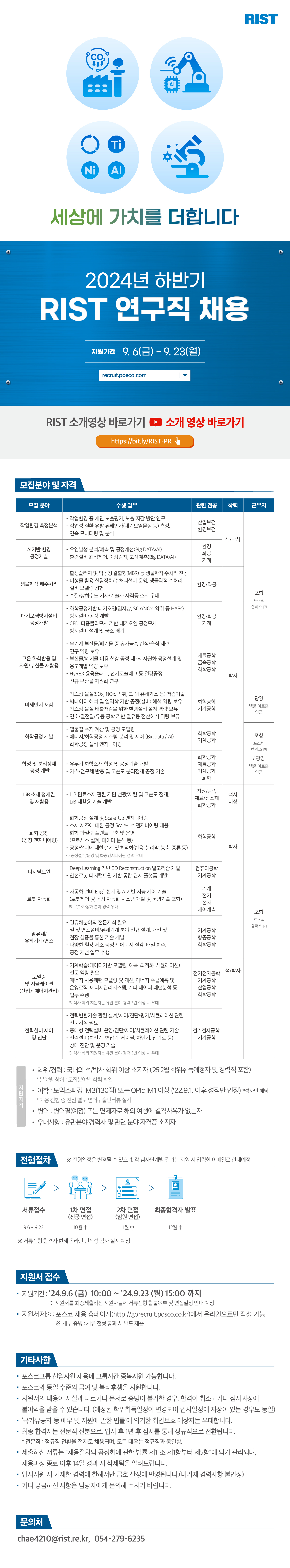 지난 35년간 포스코와 국가의 기술 발전에 기여해 온 RIST는 신재생에너지, 스마트그리드 등 에너지 관련 연구에서부터 이산화탄소 자원화, 슬래그 재활용 등 환경 관련 연구까지 인류의 미래를 위한 기술개발에 역량을 집중하고 있습니다.