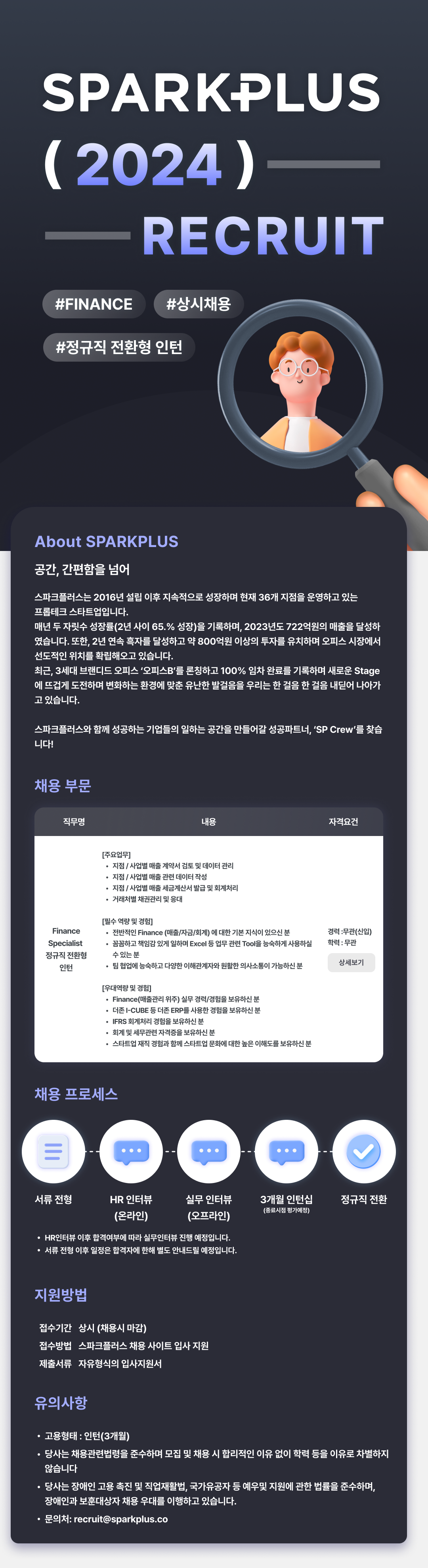 [스파크플러스] Finance Specialist 정규직 전환 인턴 채용