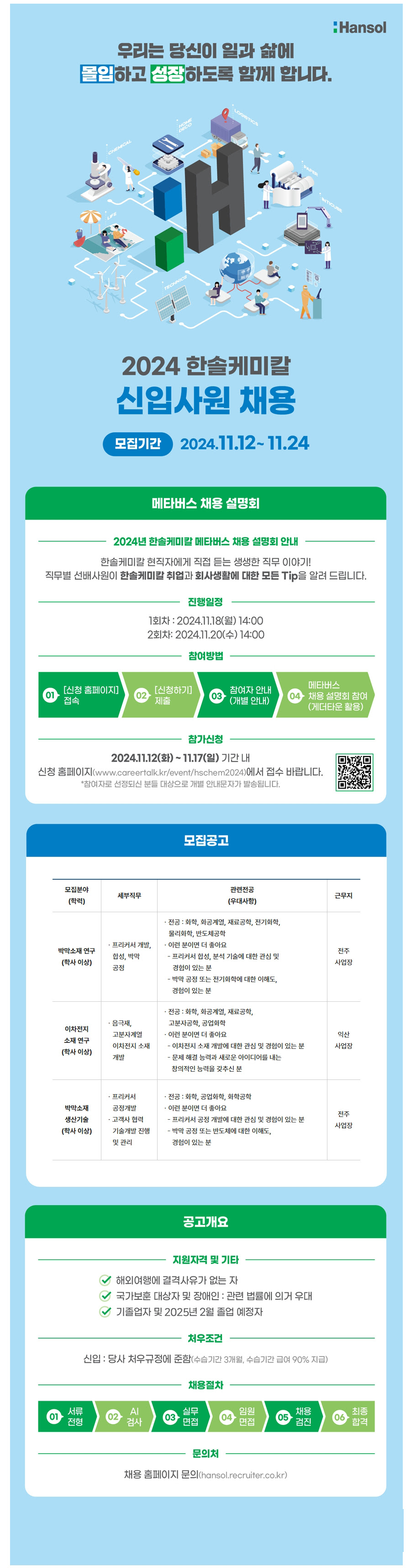 ︎ 메타버스 채용 설명회한솔케미칼 현직자에게 직접 듣는 생생한 직무 이야기!