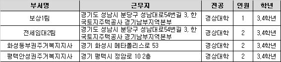 한국토지주택공사 경기남부에서 현장실습생을 아래와 같이 모집합니다.