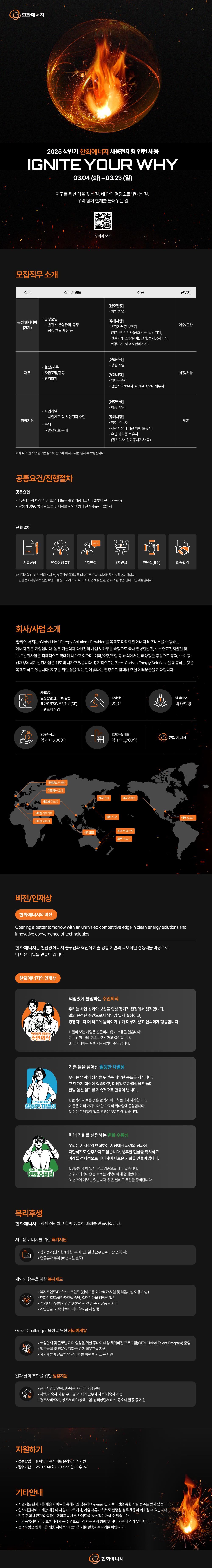 ※ 한화인 채용 페이지 (www.hanwhain.com)을 통한 온라인 접수 - 공고 확인하기 | https://bit.ly/2025상반기한화에너지채용