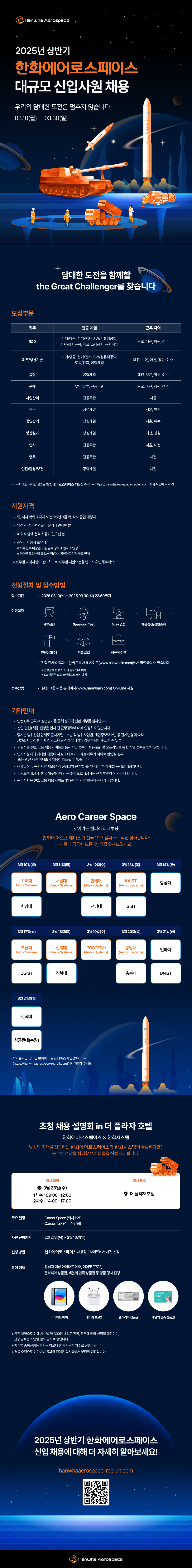 ※ 자세한 일정은 공고문 및 홈페이지 내용 참조 (https://hanwhaaerospace-recruit.com)