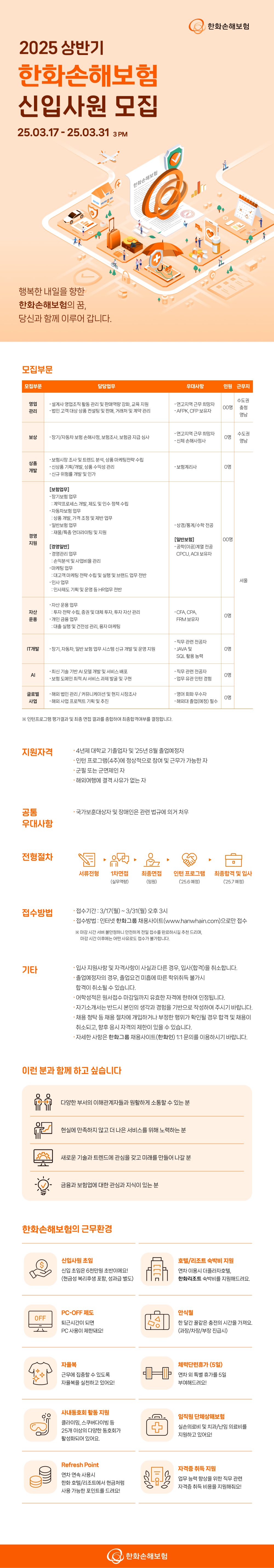 [한화손해보험] 2025 상반기 신입사원 모집 (~3/31)