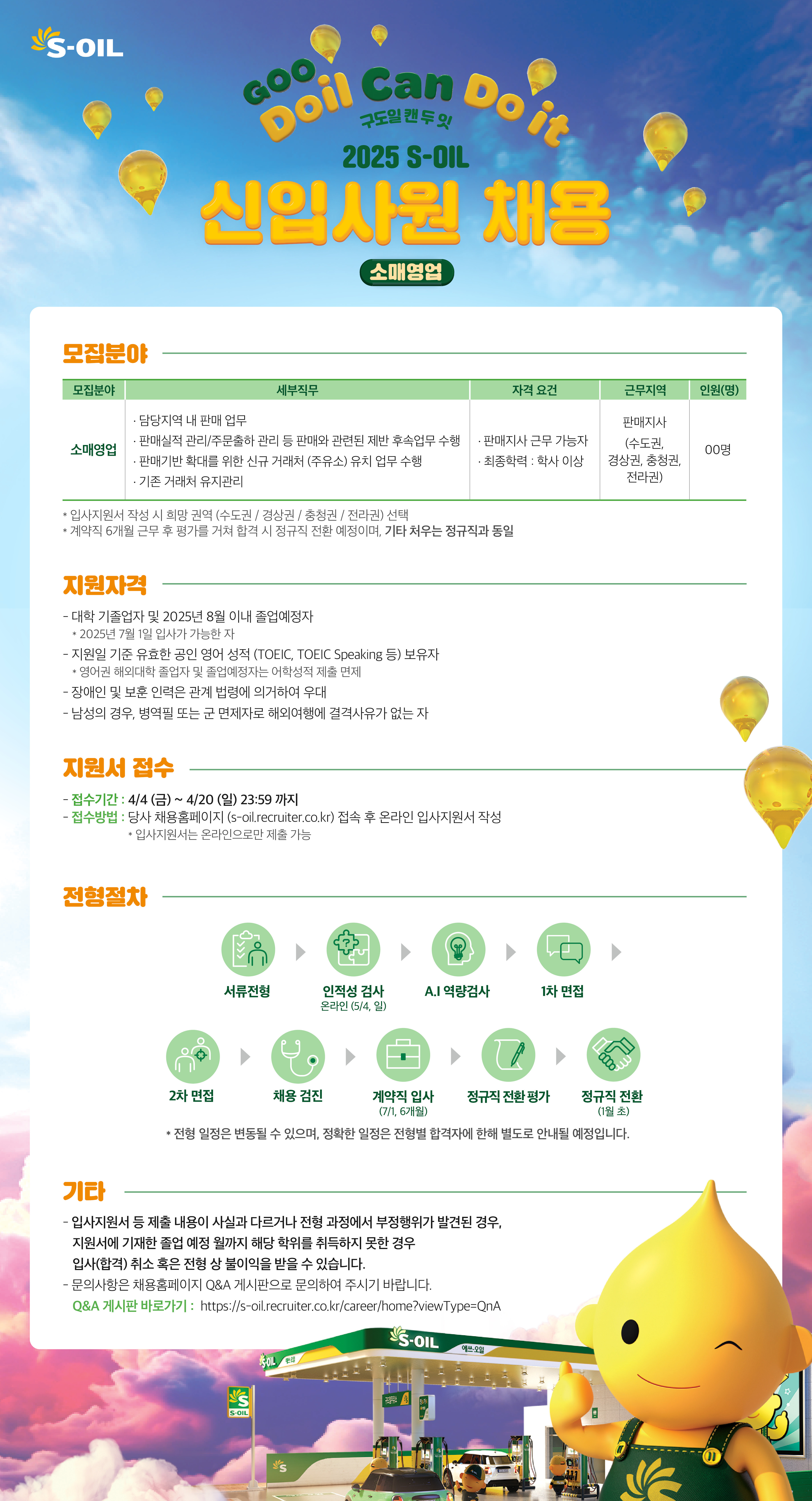 - 근무 지역 : 판매지사(수도권, 경상권, 충청권, 전라권)