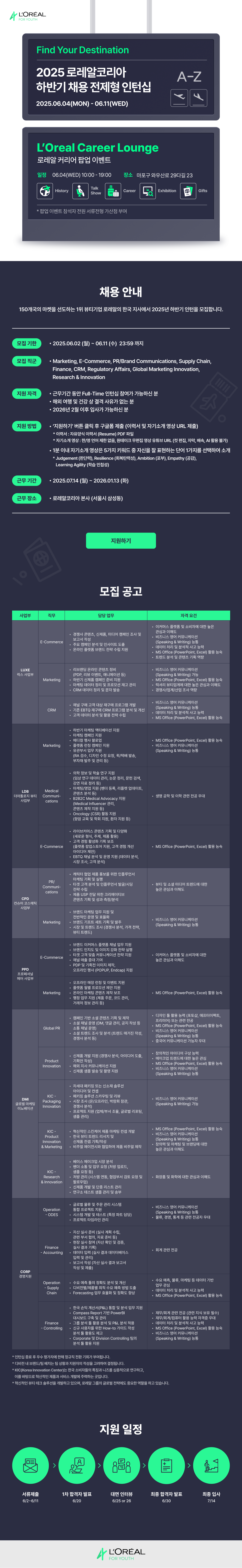 2025 로레알코리아 하반기 채용 전제형 인턴십