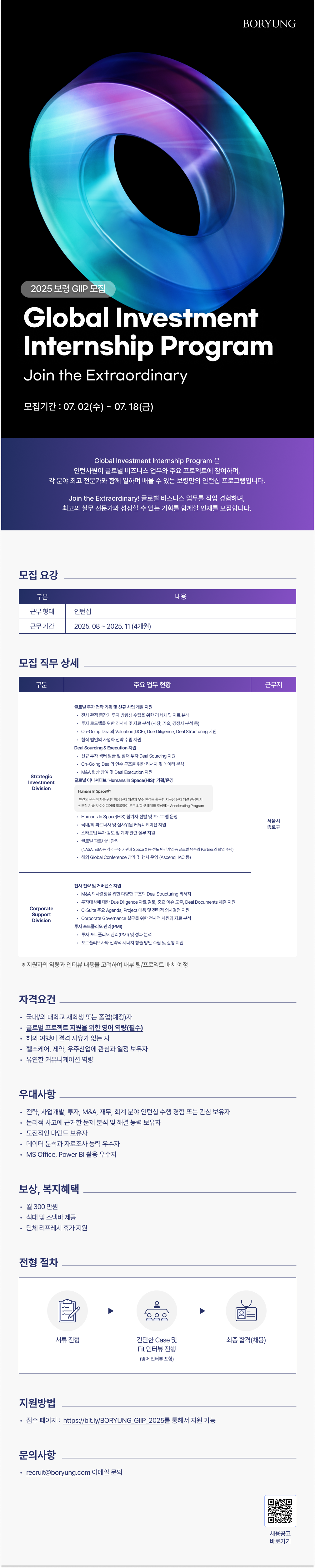 - 지원서 접수 페이지 바로가기 : https://bit.ly/BORYUNG_GIIP_2025