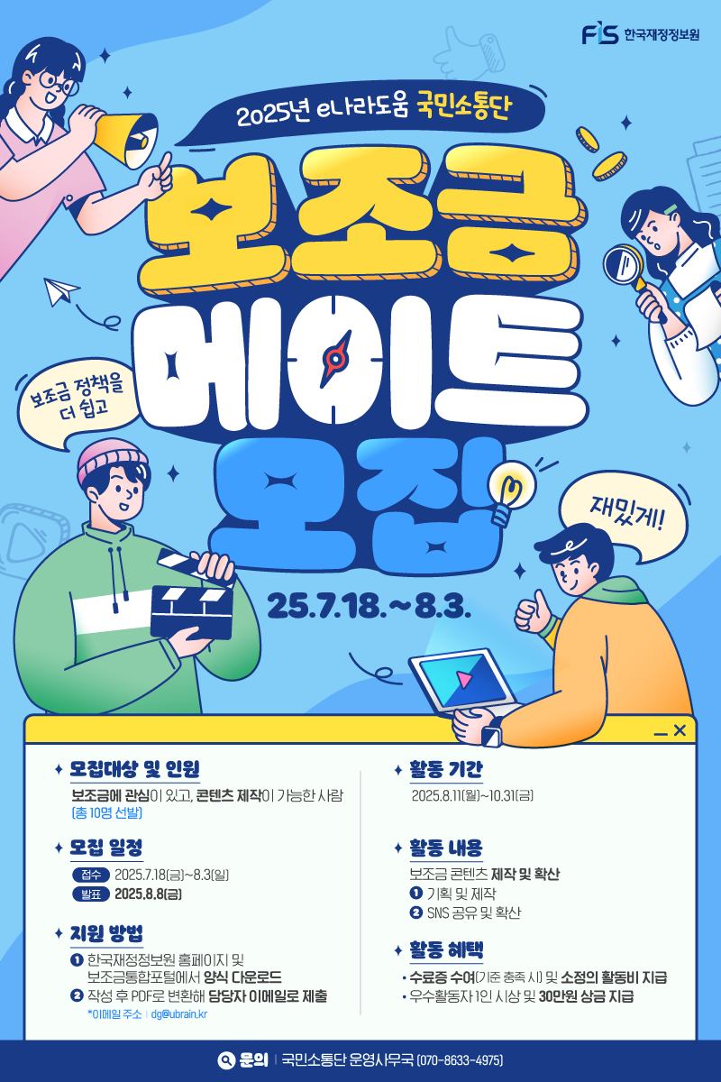 e나라도움 국민소통단 '보조금 메이트' 모집이 시작되었습니다!