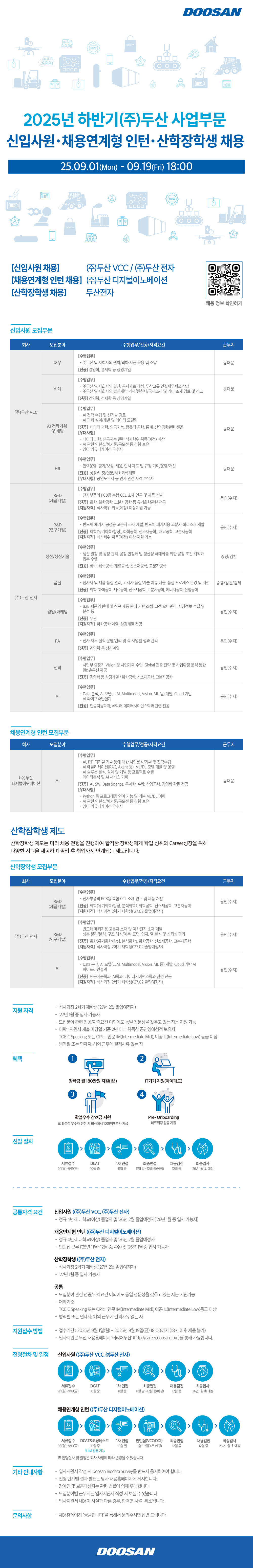- 입사지원은 두산 채용홈페이지 '커리어두산' (https://career.doosan.com/)을 통해 가능합니다.