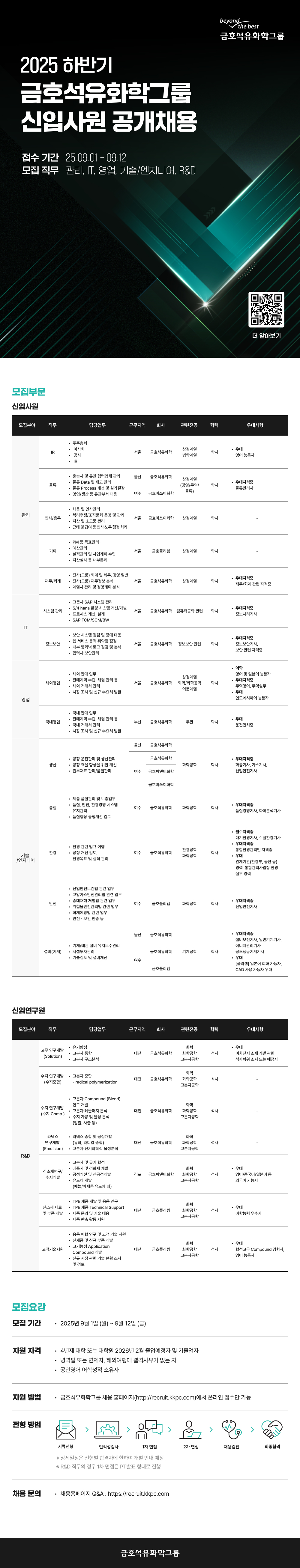 - 지원방법 : 금호석유화학그룹 채용 홈페이지(http://recruit.kkpc.com)에서 온라인 접수만 가능